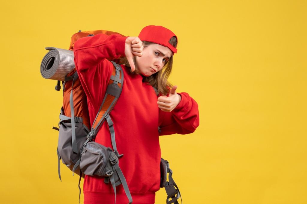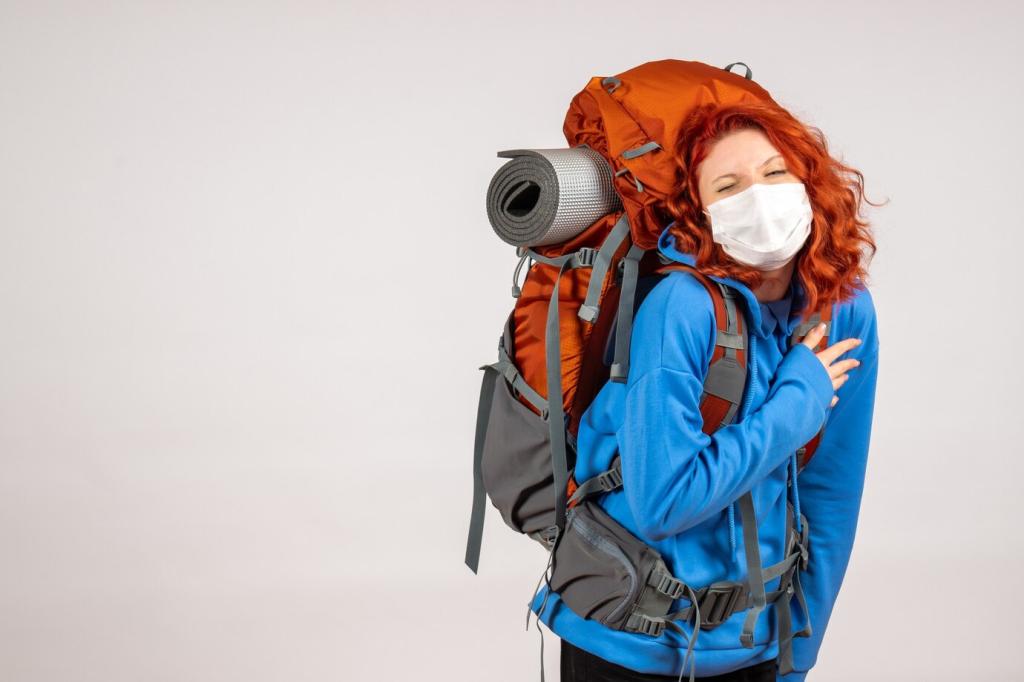 Ein wasserdichter Liner schützt zuverlässiger als nur eine Regenhülle. Schwere Dinge nah an den Rücken, Leichtes oben. Nutze kleine Drybags, um Kleidung, Elektronik und Apotheke getrennt zu sichern. So bleibt selbst im Schauer alles geordnet, trocken und schnell auffindbar.